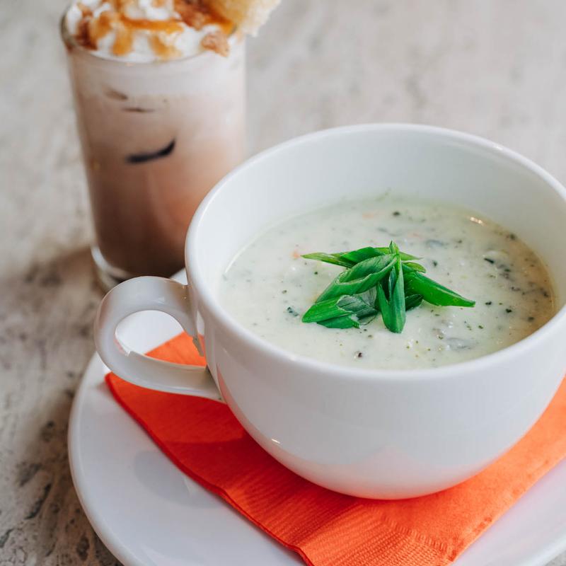 Croissant bun, egg, cheese, turkey sausage or beef bacon, arugula, and sriracha hollandaise.