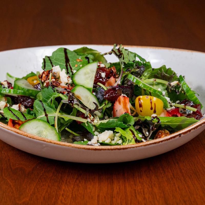 Dressings: Balsamic, Ranch, Caesar, Citrus Vinaigrette | Add a protein: Salmon* +$8 | Grilled Shrimp +$10 | Roasted Chicken +$6